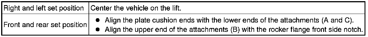 (c) Be sure to set the vehicle to the specified position described in the following chart and shown in the following illustration.