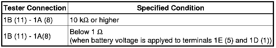 (b) If the result is not as specified, replace the instrument panel junction block.