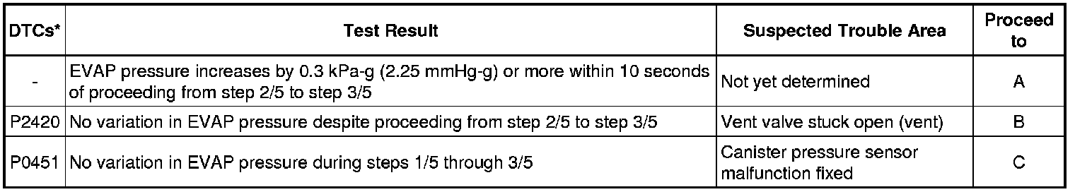 (b) Compare the EVAP pressure in step 3/5 and the second reference pressure (step 5/5).