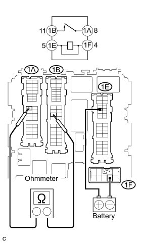 (d) Check whether operating sounds can be heard while operating the relay using the Techstream.