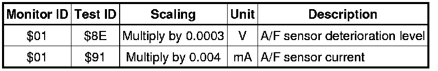 If you use a generic scan tool, multiply the test value by the scaling value listed below.
