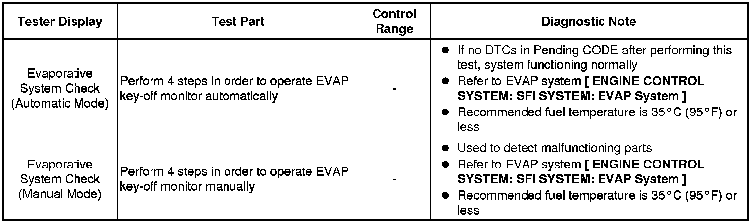 (e) Perform the System Check by referring to the table below.
