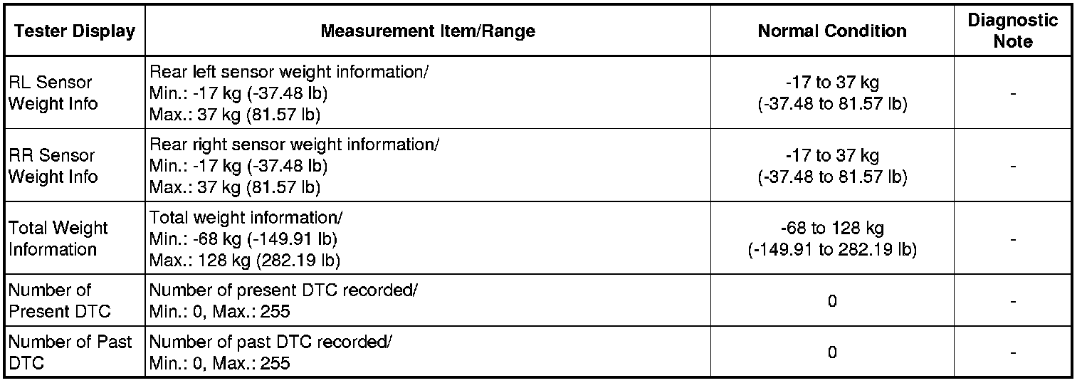 1. DATA LIST FOR OCCUPANT CLASSIFICATION ECU