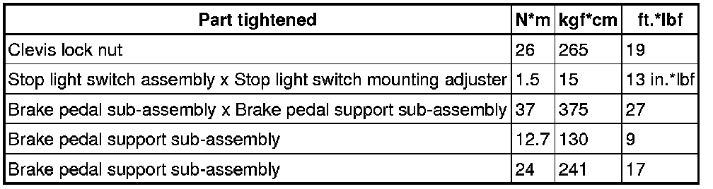 SERVICE SPECIFICATIONS: BRAKE: TORQUE SPECIFICATIONS