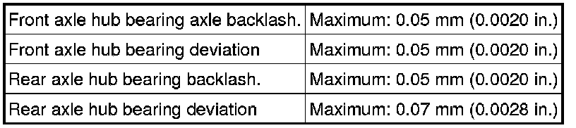 SERVICE SPECIFICATIONS: AXLE: SERVICE DATA