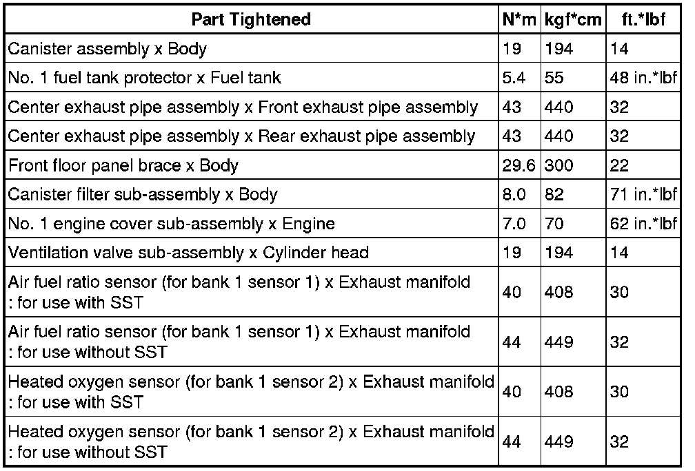 SERVICE SPECIFICATIONS: 2AZ-FE EMISSION CONTROL: TORQUE SPECIFICATIONS