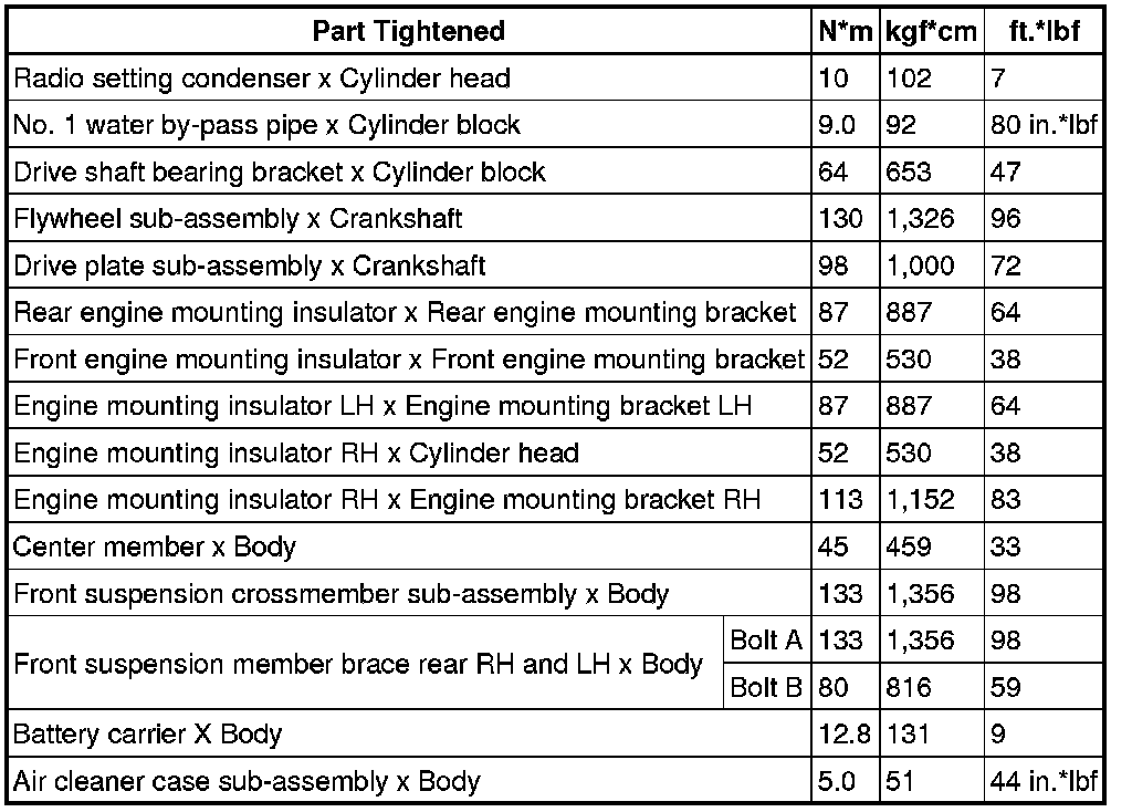 SERVICE SPECIFICATIONS: 2AZ-FE ENGINE MECHANICAL: TORQUE SPECIFICATIONS