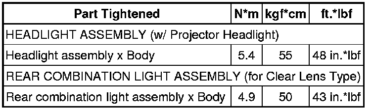 SERVICE SPECIFICATIONS: LIGHTING: TORQUE SPECIFICATIONS