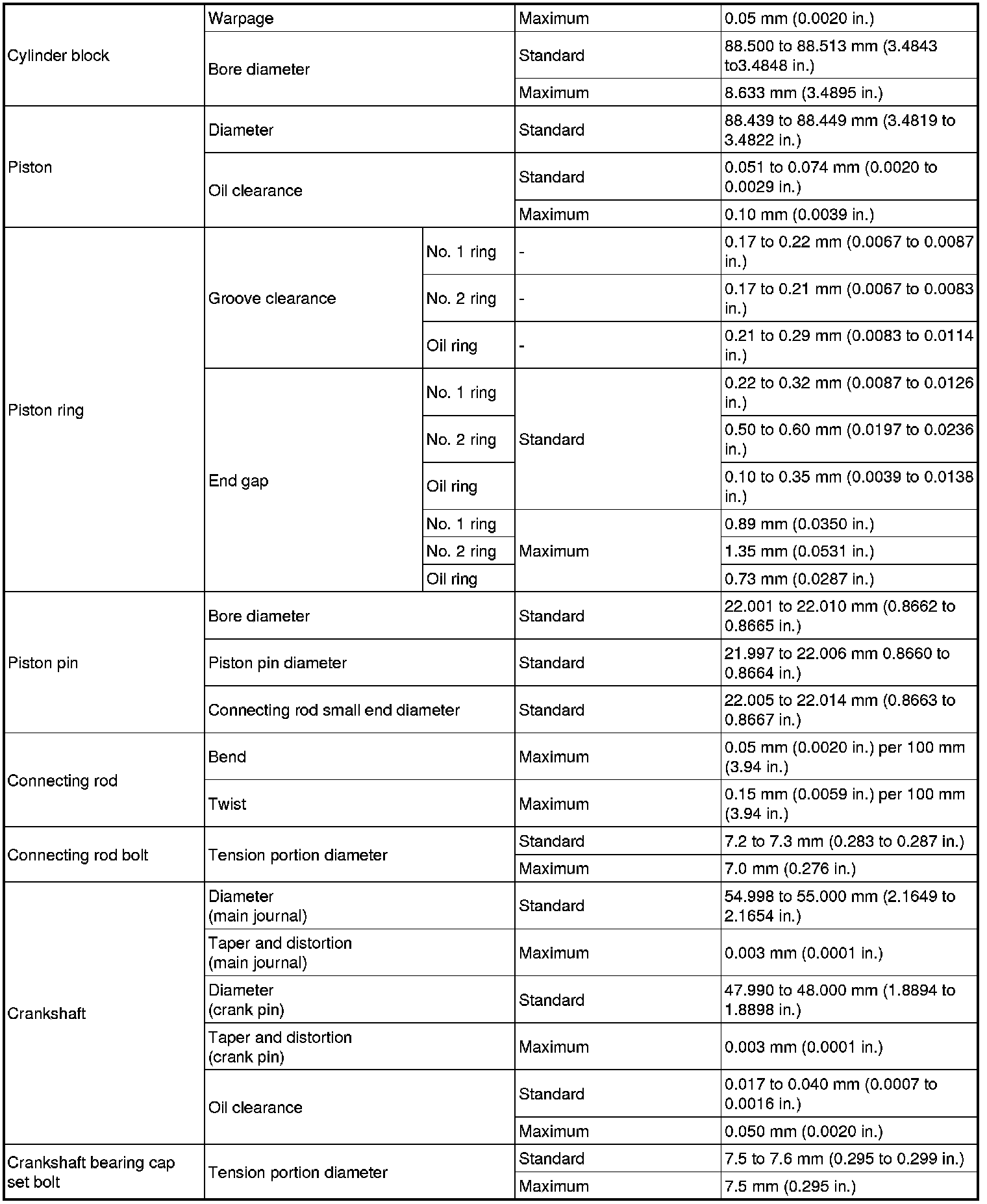 SERVICE SPECIFICATIONS: 2AZ-FE ENGINE MECHANICAL: SERVICE DATA