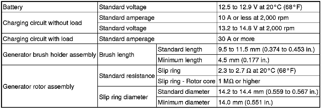 SERVICE SPECIFICATIONS: 2AZ-FE CHARGING: SERVICE DATA