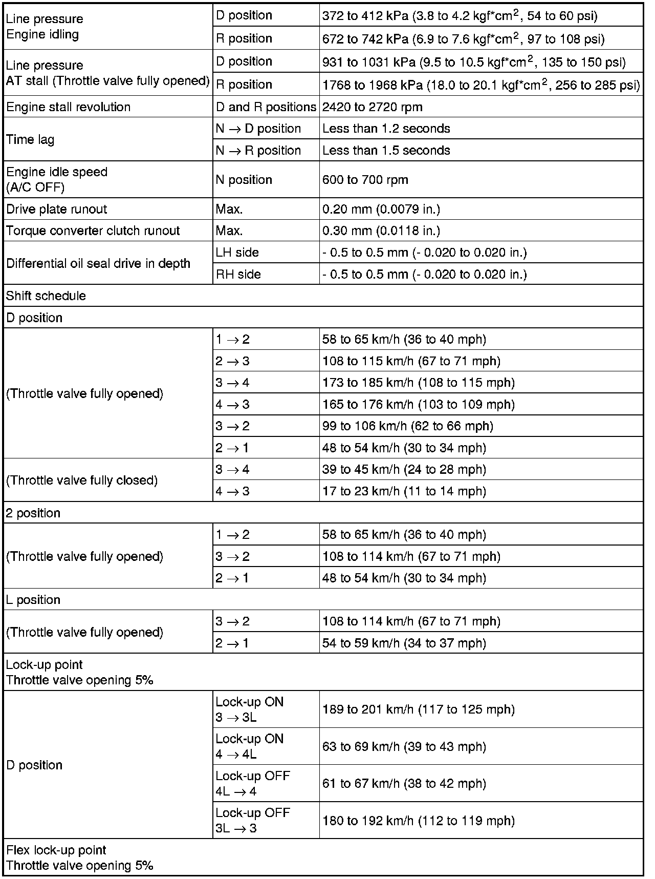SERVICE SPECIFICATIONS: U241E AUTOMATIC TRANSAXLE: SERVICE DATA