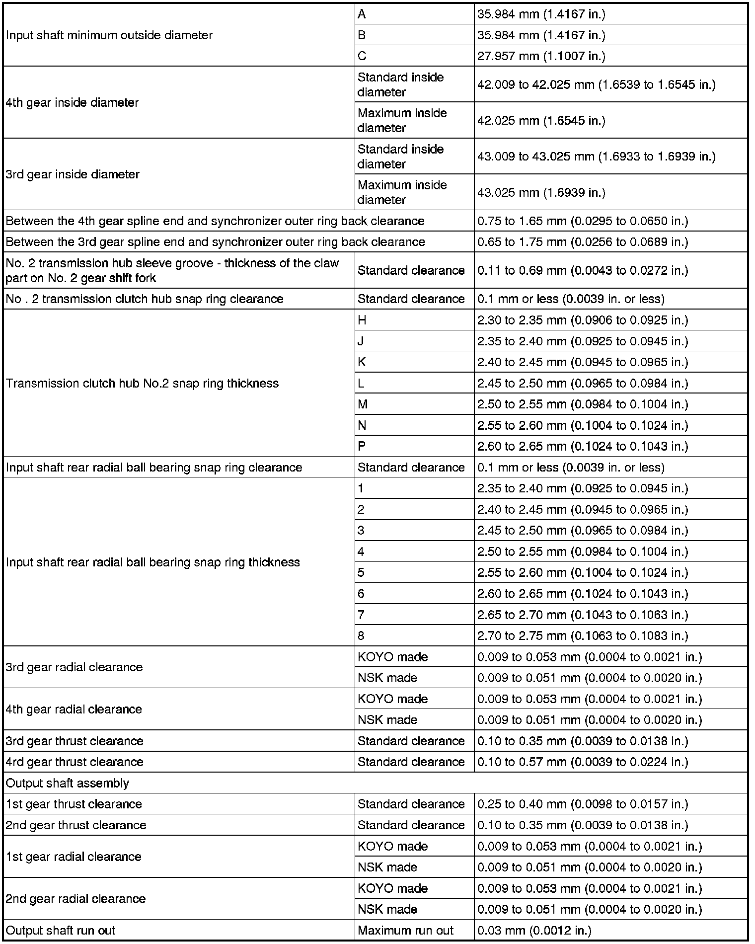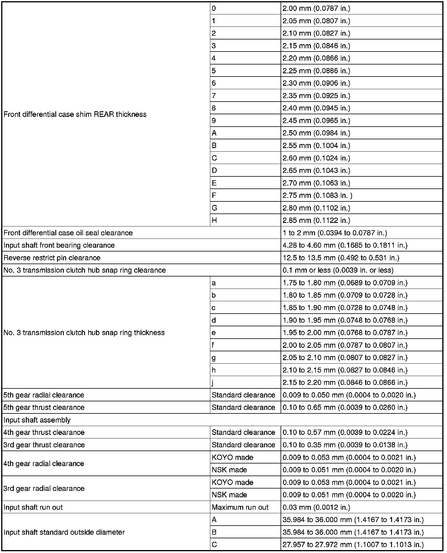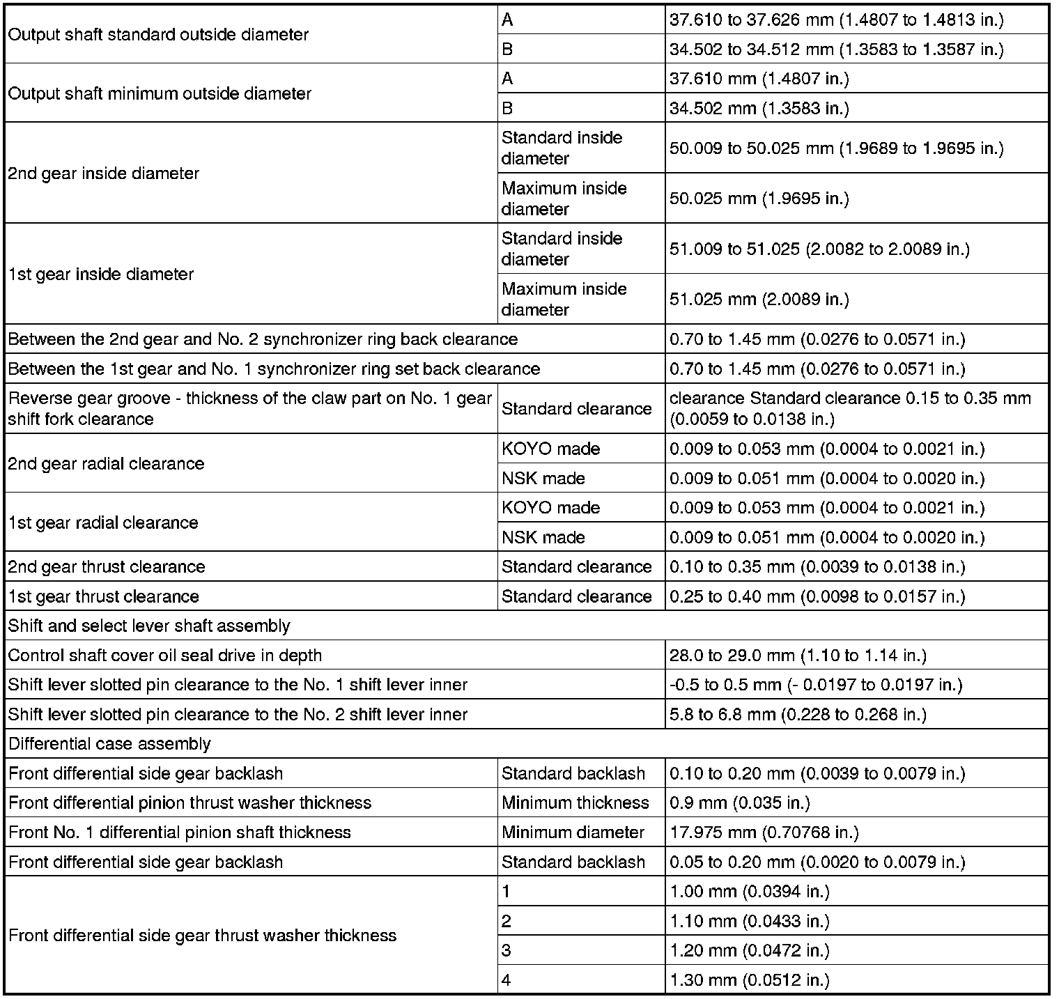 SERVICE SPECIFICATIONS: E350 MANUAL TRANSAXLE: SERVICE DATA