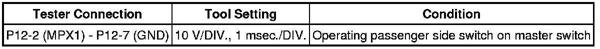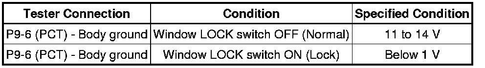 (a) Turn the window lock switch OFF and operate the passenger side power window switch on the power window regulator master switch. Check that the remote UP/DOWN function operates normally.
