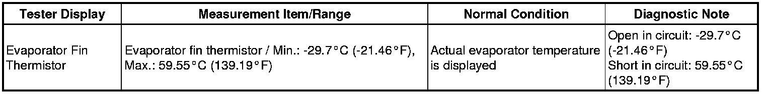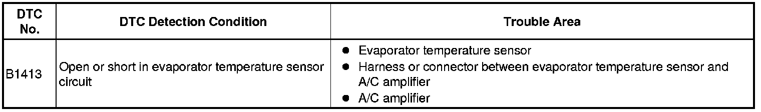AIR CONDITIONING: AIR CONDITIONING SYSTEM: B1413: Evaporator Temperature Sensor Circuit