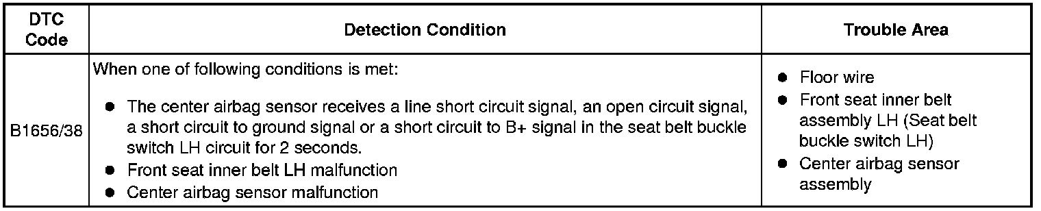 SUPPLEMENTAL RESTRAINT SYSTEM: AIRBAG SYSTEM: B1656/38: Seat Belt Buckle Switch LH Circuit Malfunction
