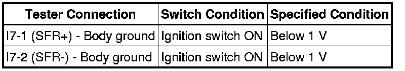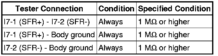 Never connect the tester to the front seat side airbag RH (side squib RH) for measurement, as this may lead to a serious injury due to airbag deployment.