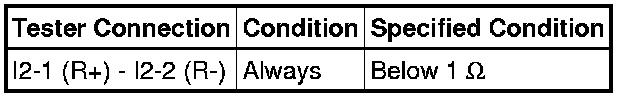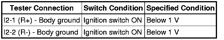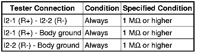 Never connect the tester to the front seat outer belt RH (front pretensioner squib RH) for measurement, as this may lead to a serious injury due to airbag deployment.