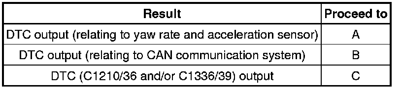 (e) Check if DTCs for zero point calibration of the yaw rate sensor undone (C1210/36) or for zero point calibration of the acceleration sensor undone (C1336/39) are output Reading and Clearing Diagnostic Trouble Codes.