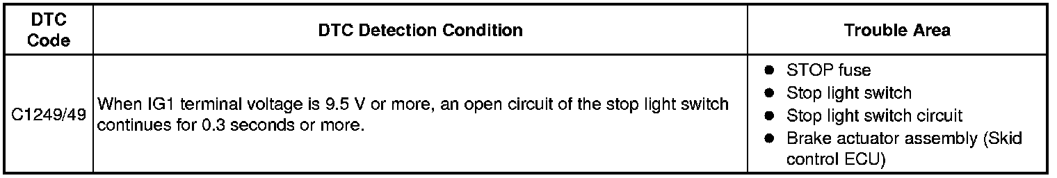 BRAKE CONTROL: VEHICLE STABILITY CONTROL SYSTEM: C1249/49: Open in Stop Light Switch Circuit