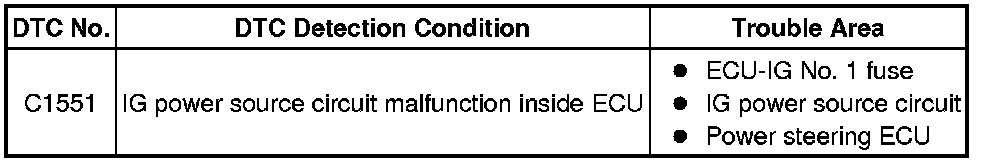POWER STEERING: POWER STEERING SYSTEM: C1551: IG Power Supply Voltage Malfunction