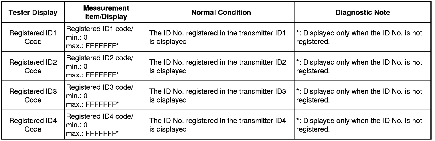* Record the "TIRE PRESS" or "ID Tire Inflation Pressure" data transmitter ID that corresponds to each tire.