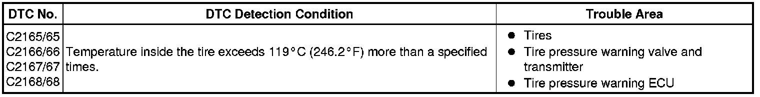 TIRE AND WHEEL: TIRE PRESSURE WARNING SYSTEM: C2165/65-C2168/68: Abnormal Temperature Inside ID1 Tire
