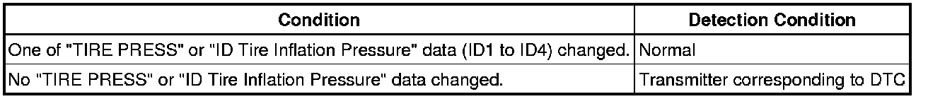 (i) When the "TIRE PRESS" or "ID Tire Inflation Pressure" data (ID1 to ID4) has changed, repeat this procedure to identify the tire pressure warning valve and transmitter that corresponds to the DTC.