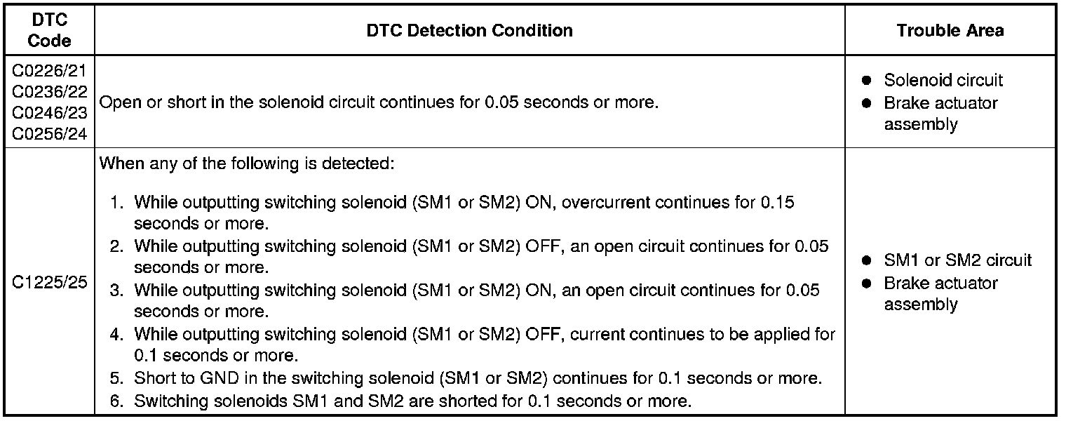 These codes are detected when a problem is determined in the brake actuator assembly.