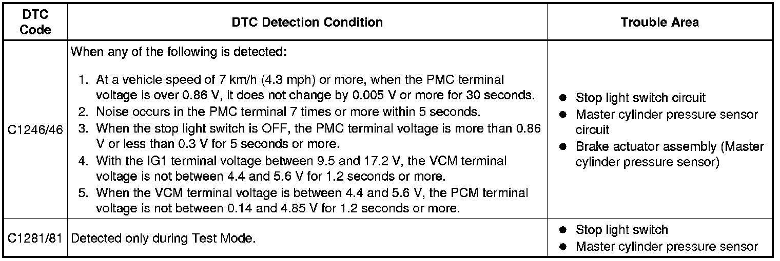 BRAKE CONTROL: VEHICLE STABILITY CONTROL SYSTEM: C1246/46,C1281/81: Master Cylinder Pressure Sensor Malfunction