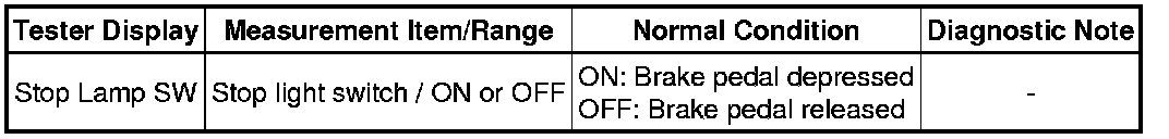 (b) Check that the stop light condition observed on the Techstream changes when the brake pedal is depressed.