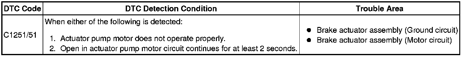 BRAKE CONTROL: VEHICLE STABILITY CONTROL SYSTEM: C1251/51: Open in Pump Motor Circuit