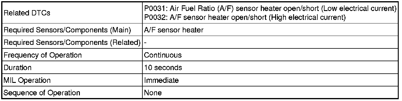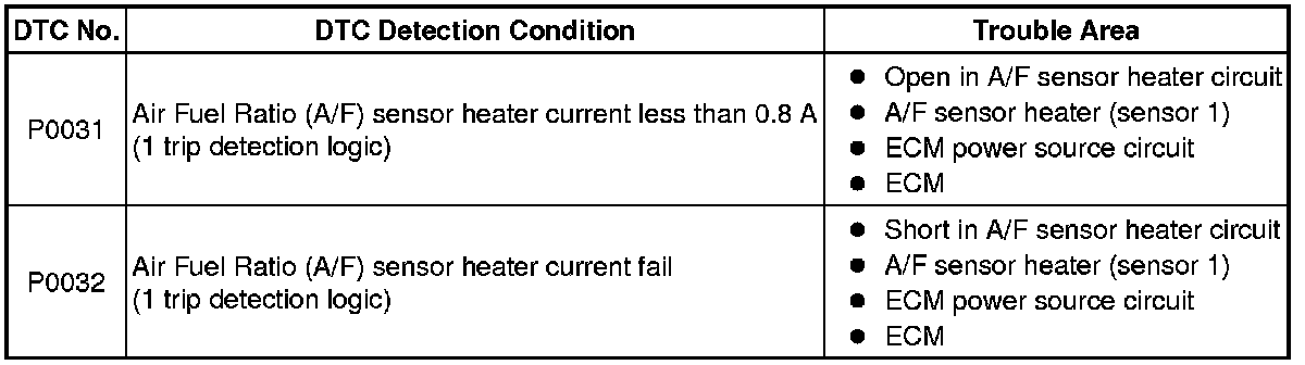 - Although the DTC titles say the oxygen sensor, these DTCs relate to the A/F sensor.