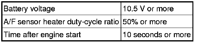 The A/F sensor is more efficient when heated. When the exhaust gas temperature is low, the sensor cannot generate useful voltage signals without supplementary heating. The ECM regulates the supplementary heating using a duty-cycle approach to adjust the average current in the sensor heater element. If the heater current is outside the normal range, the signal transmitted by the A/F sensor becomes inaccurate, as a result, the ECM is unable to regulate air-fuel ratio properly.