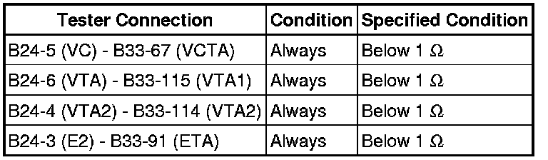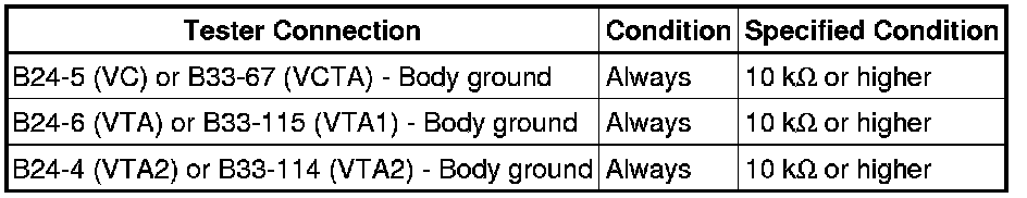 This sensor transmits two signals: VTA1 and VTA2. VTA1 is used to detect the throttle opening angle and VTA2 is used to detect malfunctions in VTA1. The ECM performs several checks to confirm the proper operation of the TP sensor and VTA1.