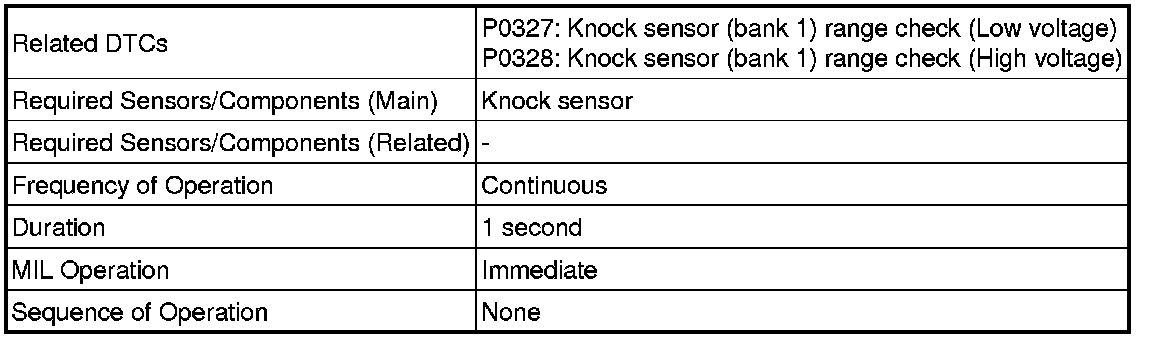 If the malfunction is not repaired successfully, DTC P0327 or P0328 is set 5 seconds after the engine is next started.