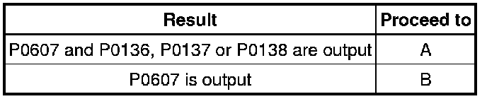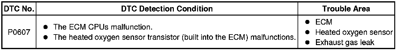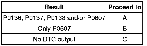 - If DTC P0607 and P0136, P0137 or P0138 are output, the output voltage of the heated oxygen sensor may remain close to 0 V or become high (around 1 V or higher).