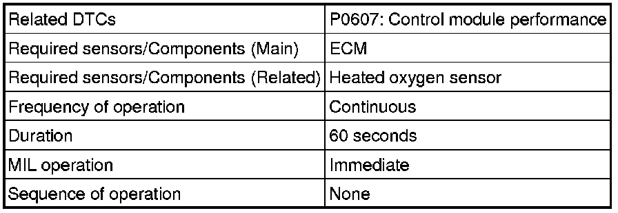 The ECM continuously monitors its internal processors (CPUs) and Heated Oxygen (HO2) sensor transistors. This self-check ensures that the ECM is functioning properly.