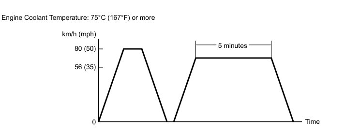 (2) Drive the vehicle between 56 and 80 km/h (35 and 50 mph) for 5 minutes.