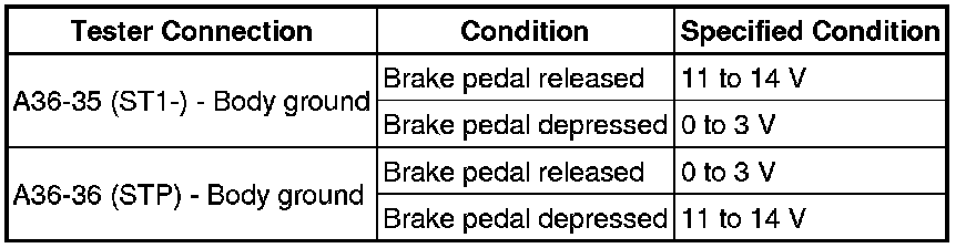 2AZ-FE ENGINE CONTROL SYSTEM: SFI SYSTEM: P0724: Brake Switch "B" Circuit High