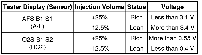 - The Control the Injection Volume for A/F sensor operation lowers the fuel injection volume by 12.5% or increases the injection volume by 25%.