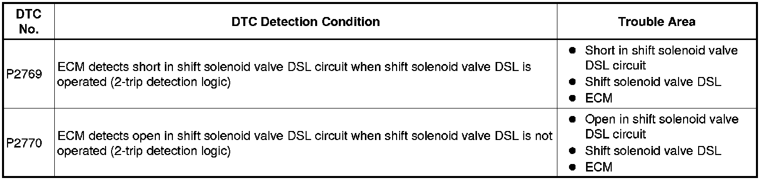 U241E AUTOMATIC TRANSAXLE: AUTOMATIC TRANSAXLE SYSTEM: P2769,P2770: Torque Converter Clutch Solenoid Circuit Low (Shift Solenoid Valve DSL)