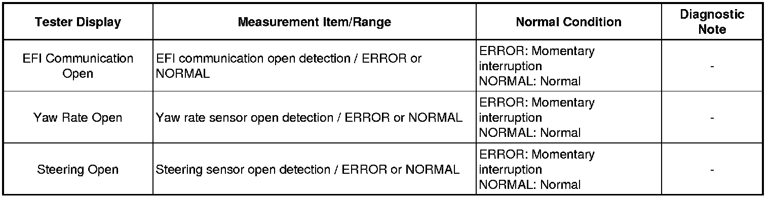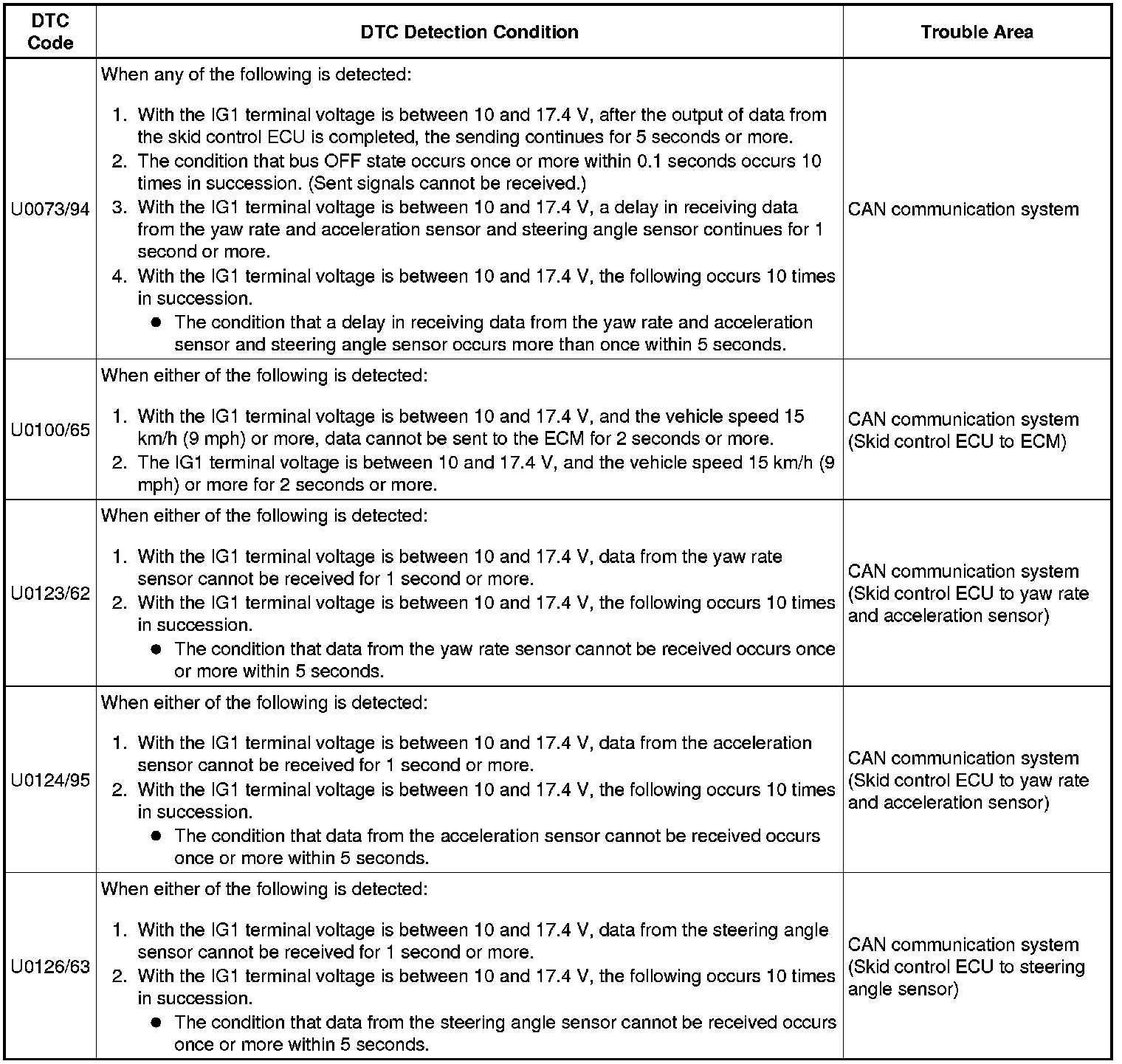 If the CAN communication system DTC and the relevant sensor DTCs are output simultaneously, troubleshoot the relevant sensor DTCs (for ABS and VSC) after the CAN communication system returns to normal.