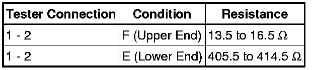 (3) If the result is not as specified, replace the fuel sender gauge assembly.