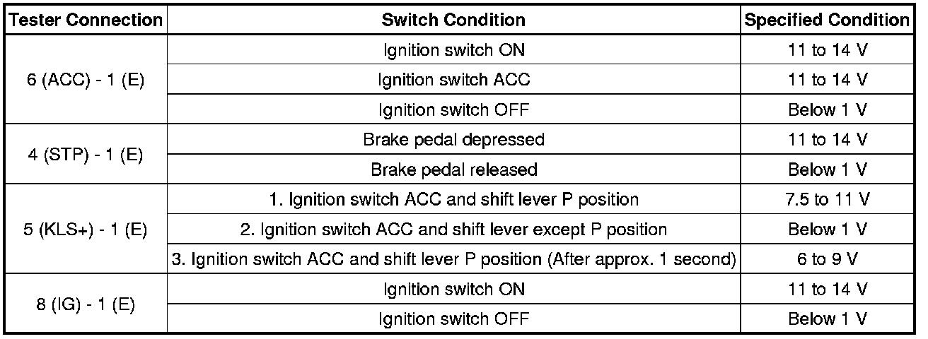 (b) If the result is not as specified, replace the shift lock control ECU.