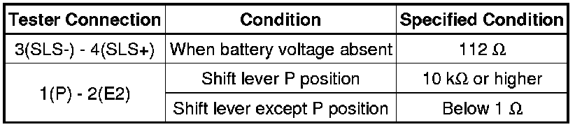 (b) If the resistance value is not as specified, replace the shift lock control unit.