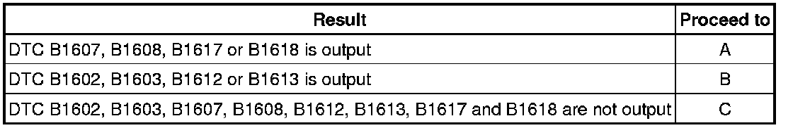 Codes other than B1602, B1603, B1607, B1608, DTC B1612, B1613, B1617 and B1618 or 83 and 84 may be output at this time, but they are not related to this check.