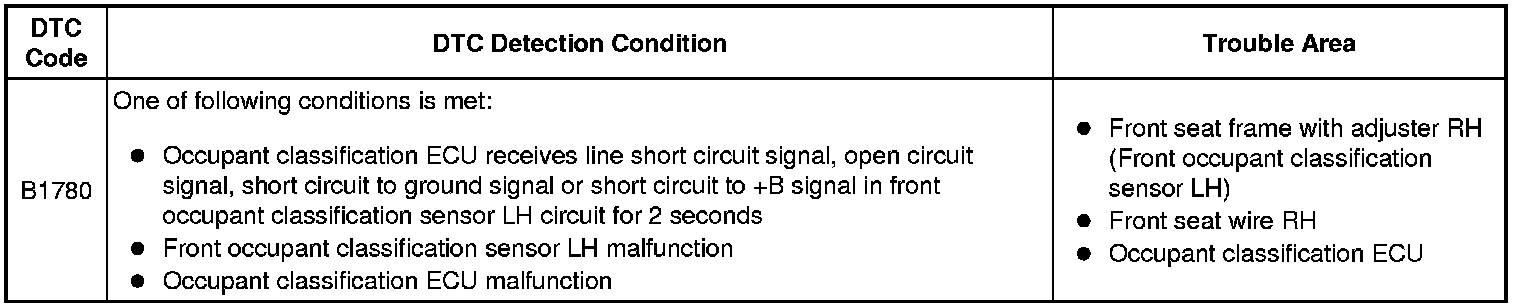 DTC B1780 is set when a malfunction is detected in the front occupant classification sensor LH circuit.
