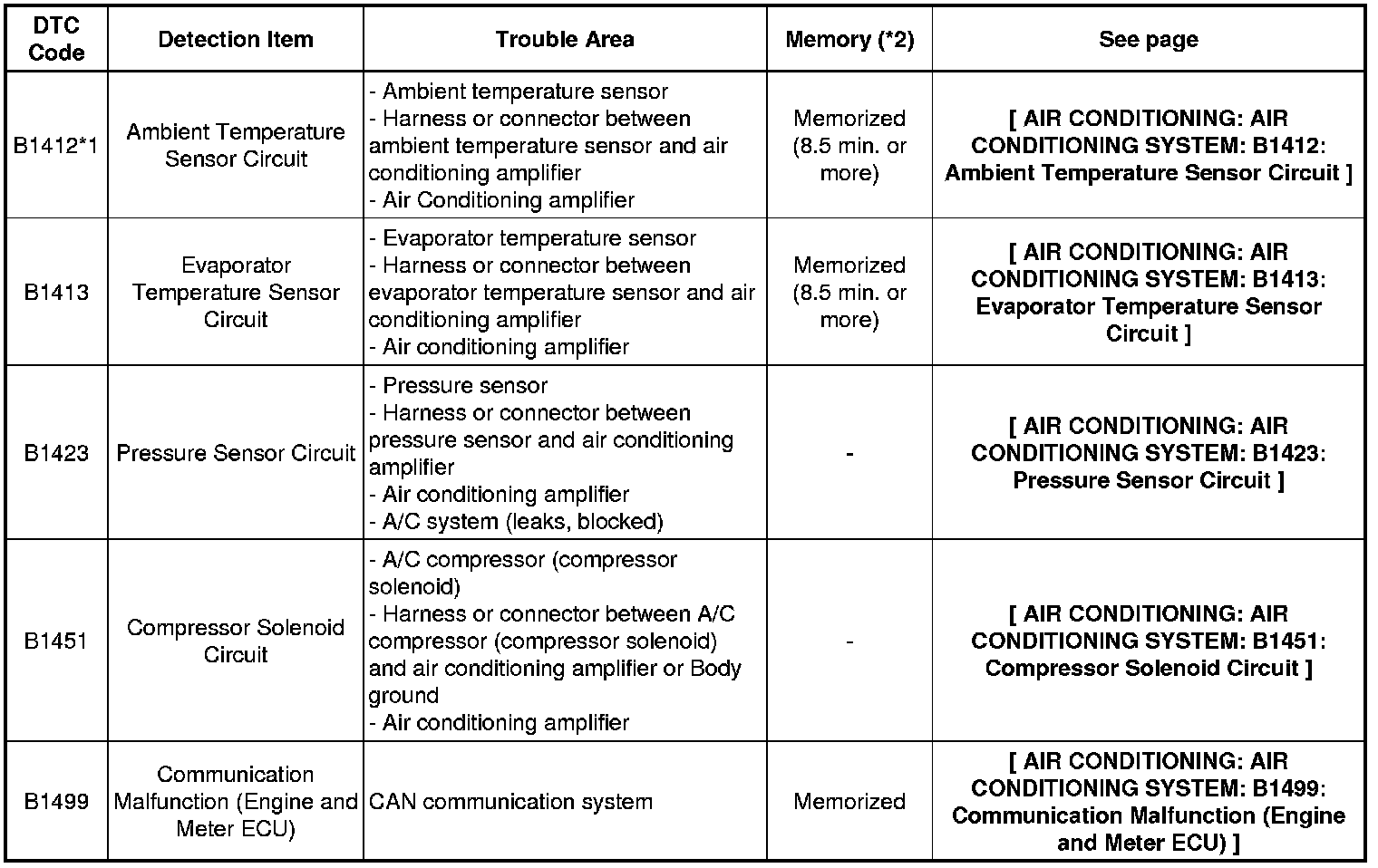 * *1: If the ambient temperature is approximately -52.9°C (-63.22°F) or lower, DTC B1412 may be output even though the system is normal.