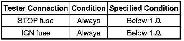1. INSPECT FUSES (STOP AND IGN)