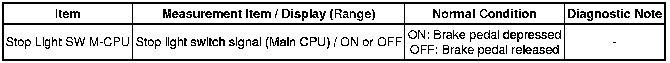 When the brake pedal is depressed, the stop light switch sends a signal to the ECM. When the ECM receives this signal, it cancels the cruise control. The fail-safe function operates to enable normal driving even if there is a malfunction in the stop light signal circuit. The cancellation condition occurs when voltage is applied to terminal STP. When the brake is applied, voltage is normally applied to terminal STP of the ECM through the STOP SW fuse and the stop light switch, and the ECM turns the cruise control off.